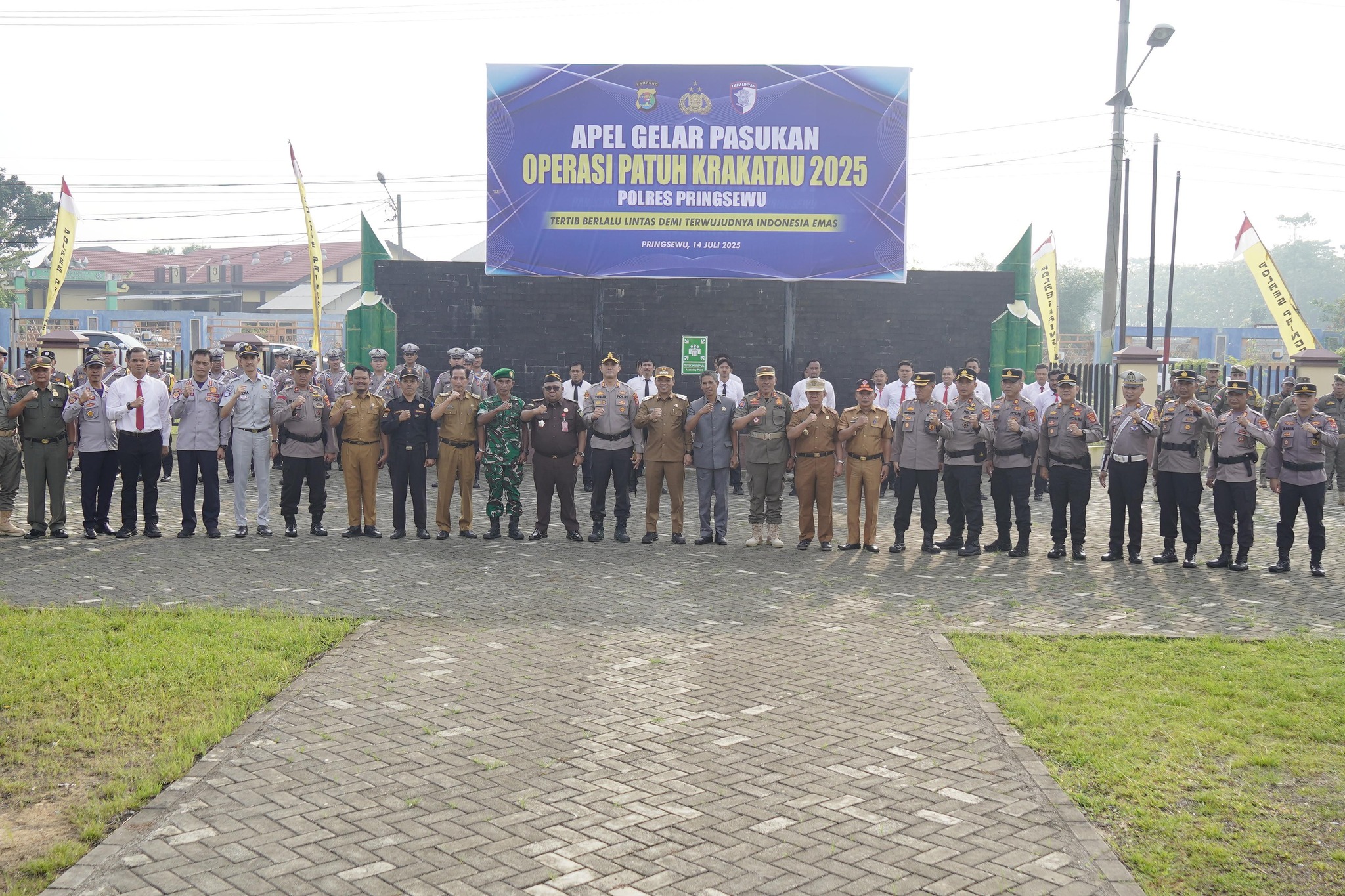 PRINGSEWU – Bupati Pringsewu Riyanto Pamungkas menghadiri Apel Gelar Pasukan Operasi Patuh Krakatau 2025 yang digelar di halaman Mapolres Pringsewu, Komplek Perkantoran Pemkab setempat, Senin (14/7/2025). Apel ini diikuti oleh jajaran Polri, TNI, pemerintah daerah, anggota Pramuka, serta organisasi kemasyarakatan terkait.