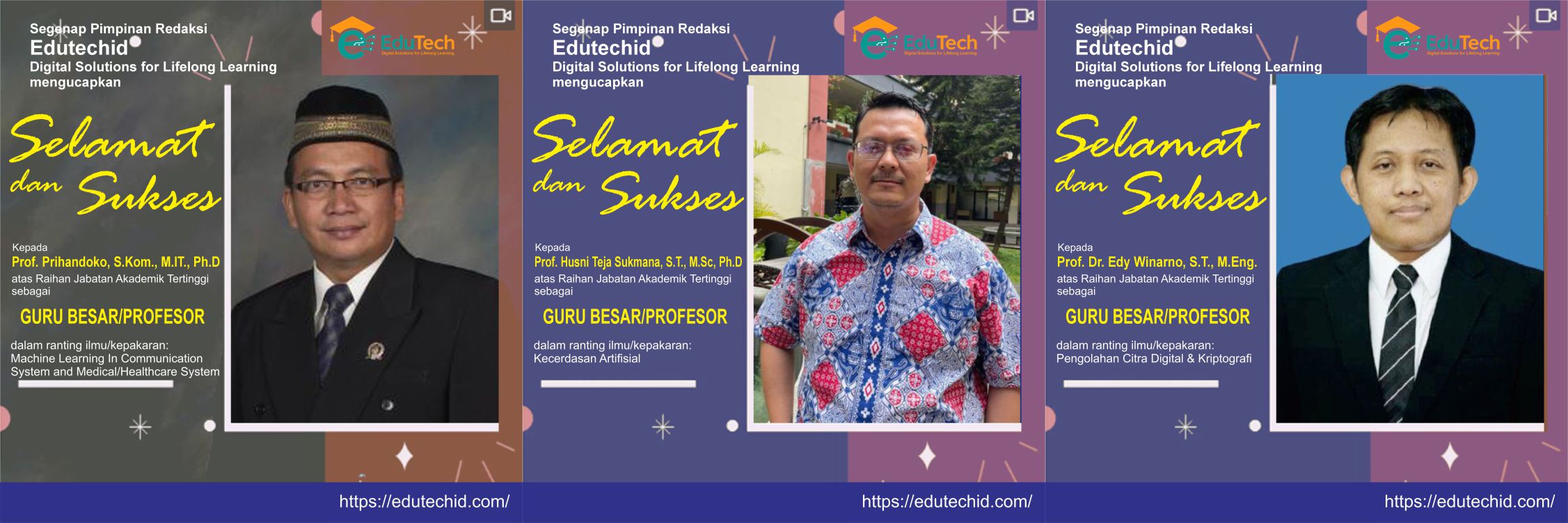 EDUTECHID UCAPKAN SELAMAT KEPADA TIGA AKADEMISI ATAS PENGUKUHAN JABATAN GURU BESAR