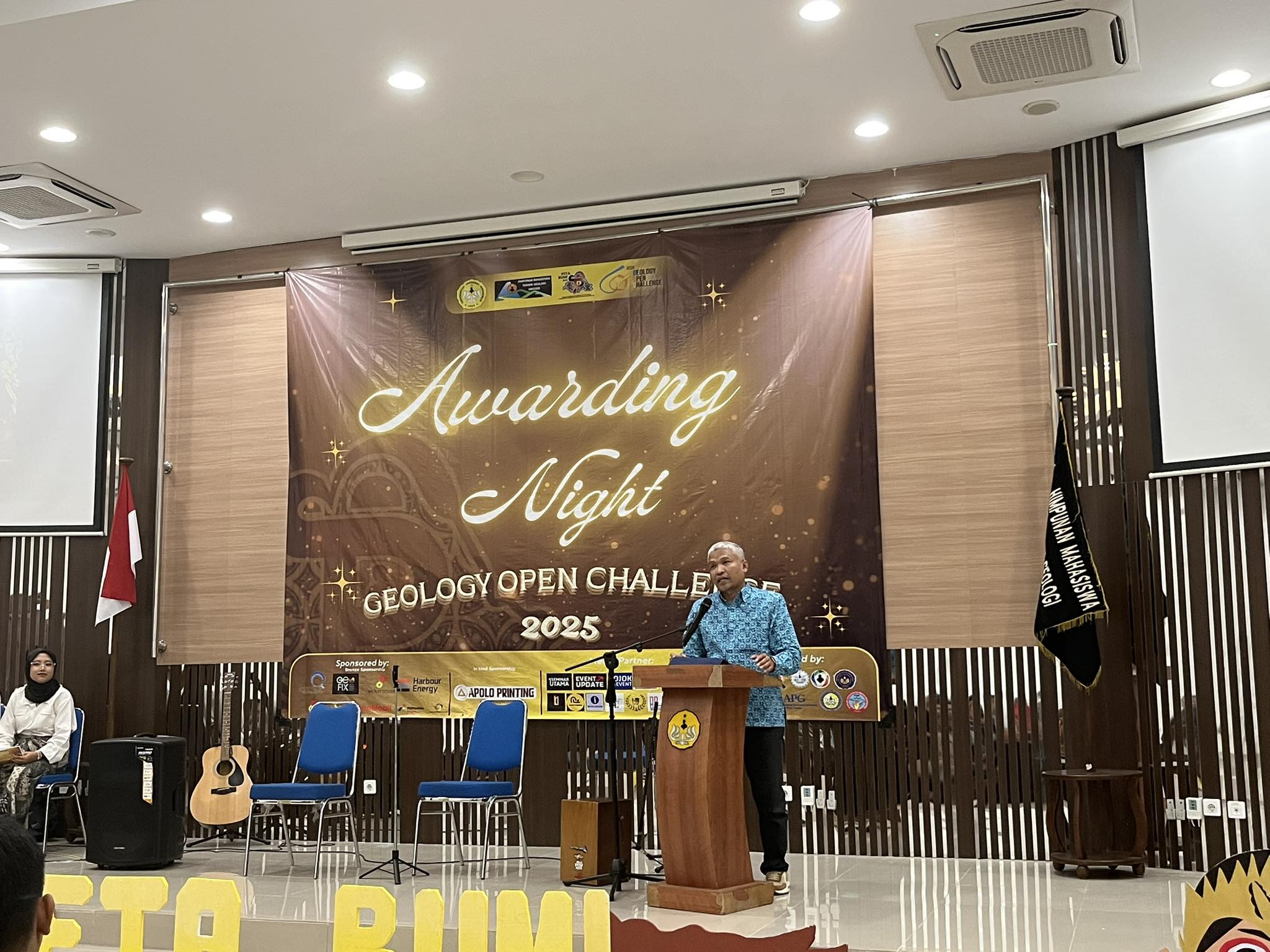 Malam penganugerahan ini turut diwarnai dengan penyerahan piala, sertifikat, dan hadiah uang tunai kepada para pemenang. Salah satunya adalah tim yang berhasil meraih Juara 1 Geology Open Challenge dan Juara Favorit, yang disambut dengan tepuk tangan meriah dari para hadirin.