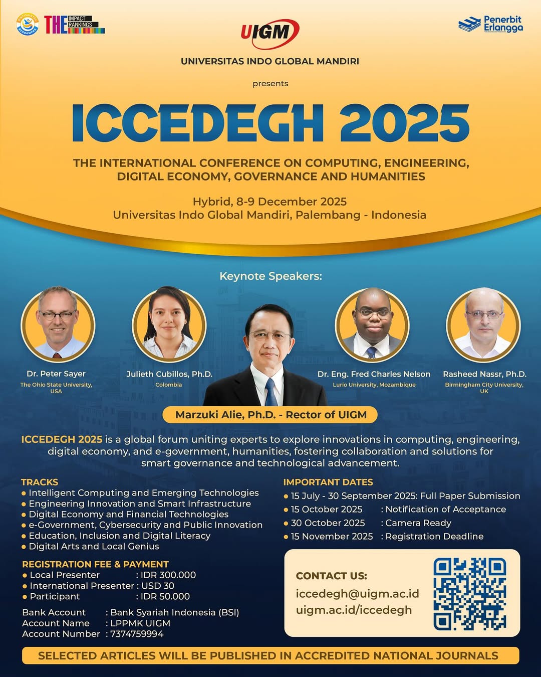 Selain menjadi ajang berbagi ilmu, artikel terpilih dari ICCEDEGH 2025 akan dipublikasikan dalam jurnal nasional terakreditasi, memberi peluang besar bagi para akademisi dan peneliti untuk meningkatkan rekam jejak publikasi mereka.