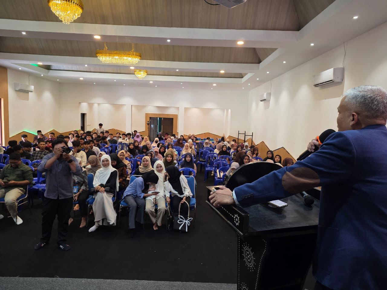 Selain sesi pemaparan, kuliah umum juga diwarnai dengan dialog interaktif antara narasumber dan peserta. Banyak pertanyaan kritis dari mahasiswa terkait peluang dan tantangan AI dalam pendidikan, termasuk etika penggunaannya di tengah perkembangan teknologi yang begitu cepat.