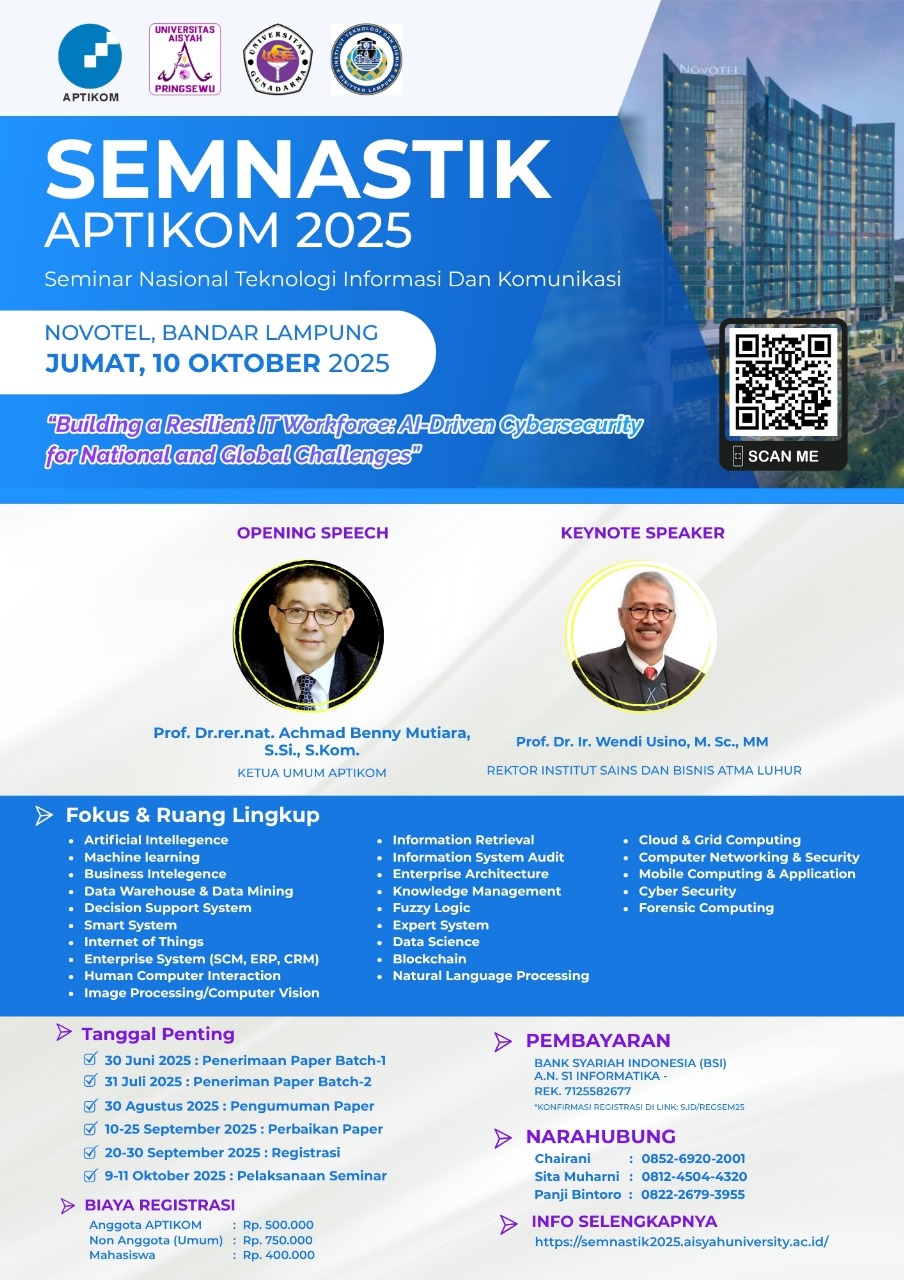 Sebagai bagian dari rangkaian kegiatan RAKORNAS, SEMNASTIK APTIKOM 2025 mengusung tema: