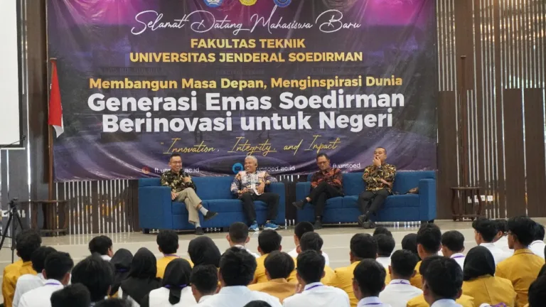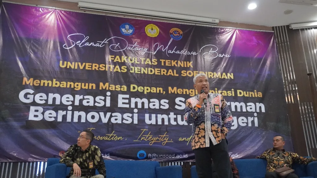 PURBALINGGA – Suasana pagi di Fakultas Teknik Universitas Jenderal Soedirman (FT Unsoed), Purbalingga, Jumat (15/8/2025) terasa berbeda dari biasanya. Ratusan mahasiswa baru dari tujuh program studi berkumpul penuh semangat untuk mengikuti hari pertama Pengenalan Kehidupan Kampus bagi Mahasiswa Baru (PKKMB) 2025, yang berlangsung di Kampus FT Blater, Kalimanah, Purbalingga.