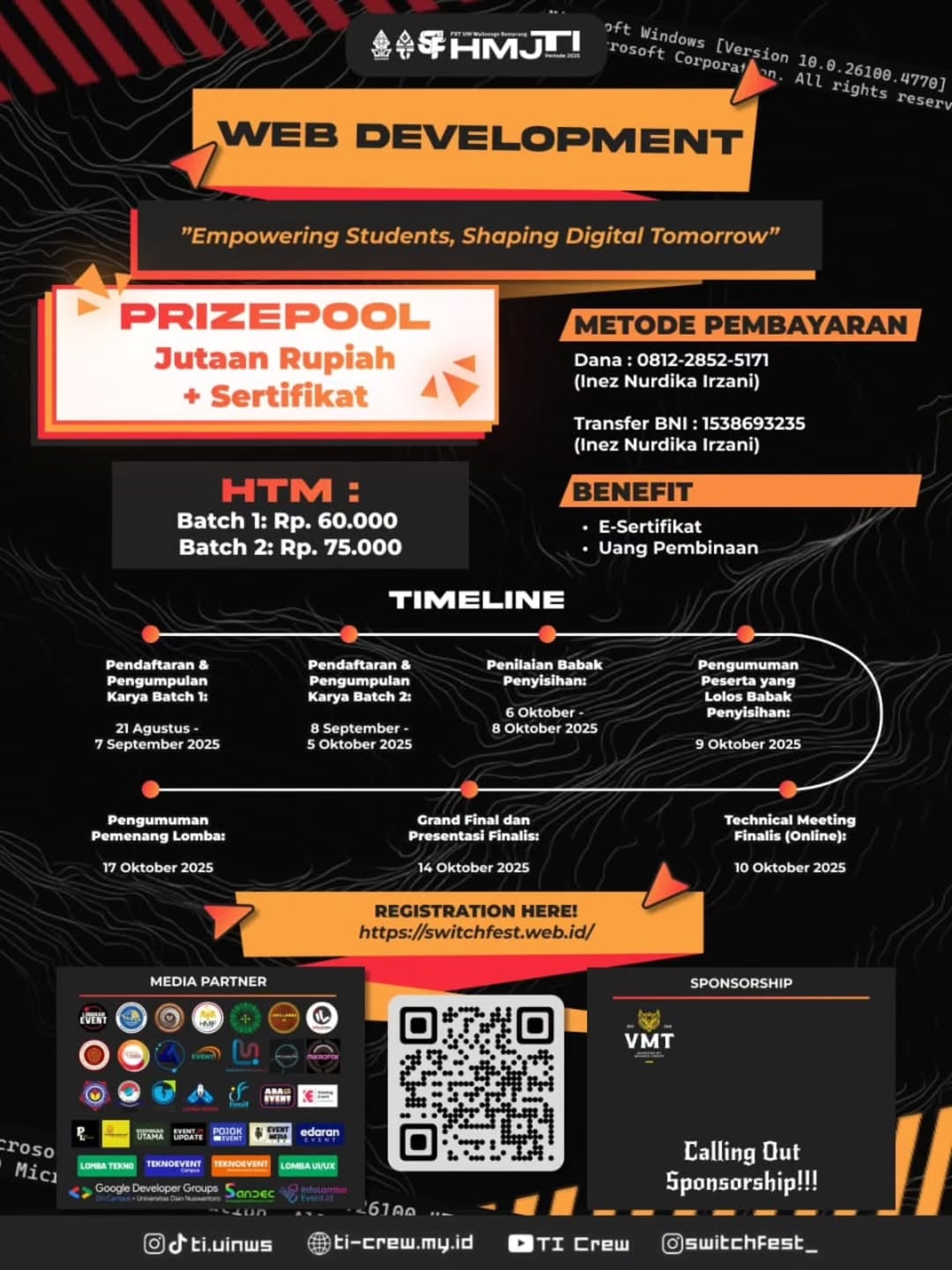 SwitchFest 2025 menjadi wadah bagi mahasiswa, pelajar, hingga masyarakat umum yang ingin menunjukkan kemampuan sekaligus mendapatkan pengalaman berharga di dunia digital.