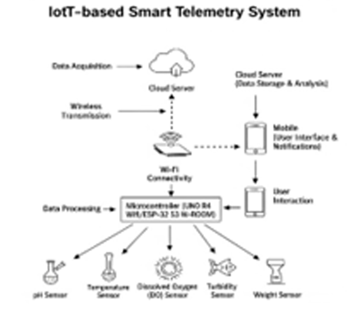 Sistem telemetri ini merupakan sebuah solusi berbasis Internet of Things (IoT) yang mampu memantau parameter lingkungan air secara real-time, seperti sensor suhu air untuk memantau suhu air, sensor pH untuk mengukur tingkat keasaman atau kebasaan air, sensor Dissolved Oxygen (DO) untuk mengukur kadar oksigen terlarut dalam air, Turbidity sensor untuk mengukur kekeruhan air, TDS (Total Dissolved Solids) sensor untuk mengukur partikel terlarut dalam air serta sensor berat untuk memantau pertumbuhan ikan. Selain itu, sistem ini juga dapat memantau pertumbuhan ikan secara otomatis dan memberikan notifikasi kepada pembudidaya jika terdeteksi kondisi yang tidak ideal berbasis android. Hal ini memungkinkan pembudidaya untuk mengambil tindakan korektif dengan cepat, yang pada akhirnya dapat meningkatkan efisiensi operasional dan mengurangi risiko kegagalan panen.